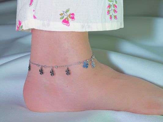 Floral Charm Necklace with Round Brilliant Diamonds in Silver