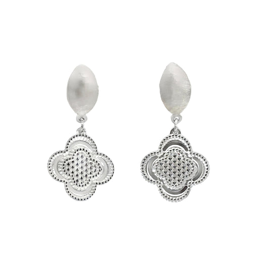 Elegant Silver Clover Charm Necklace and Earrings Set
