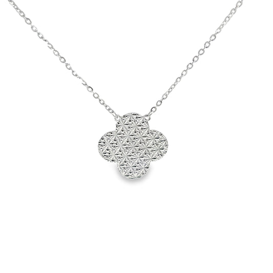 Sterling Silver Textured Clover Charm Necklace