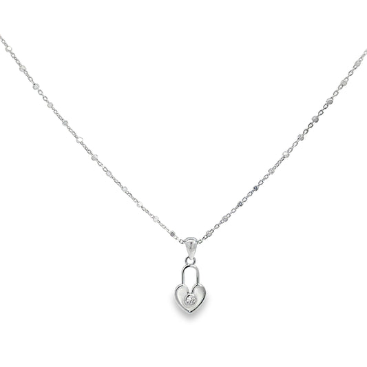 Silver Heart Lock Pendant Necklace with Round Diamond