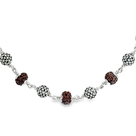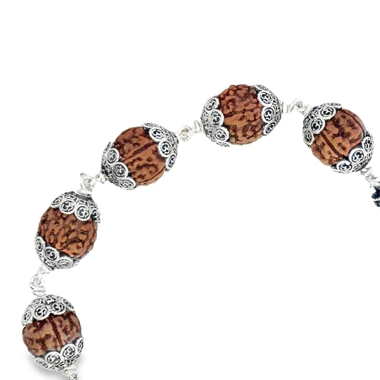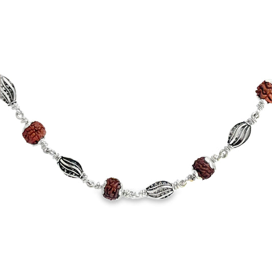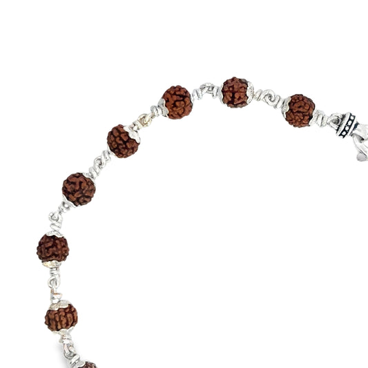 Rudraksha Seed & Sterling Silver Beaded Bracelet