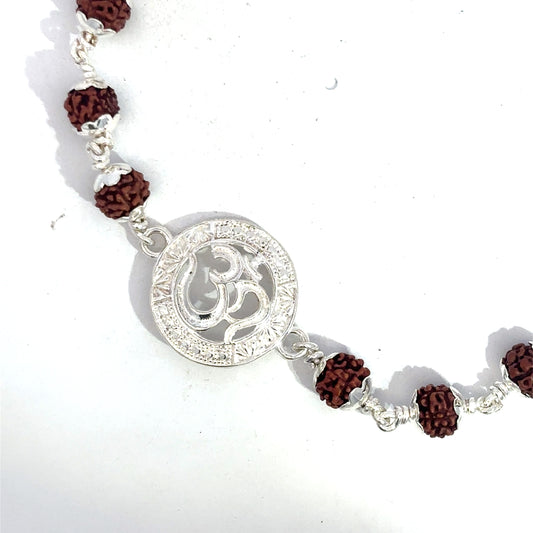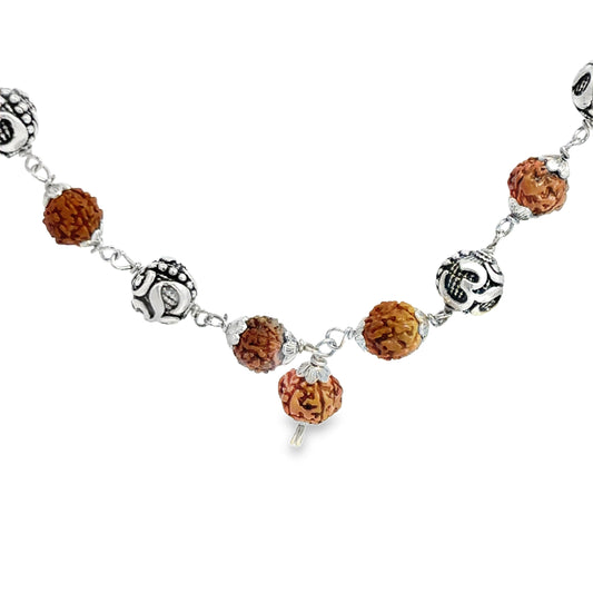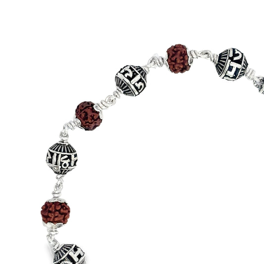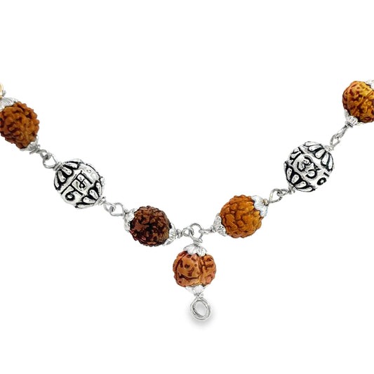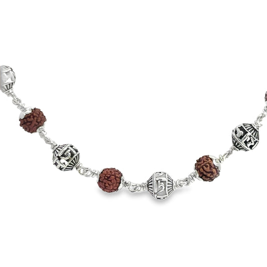 Rudraksha Seed & Sterling Silver Om Charm Beaded Bracelet