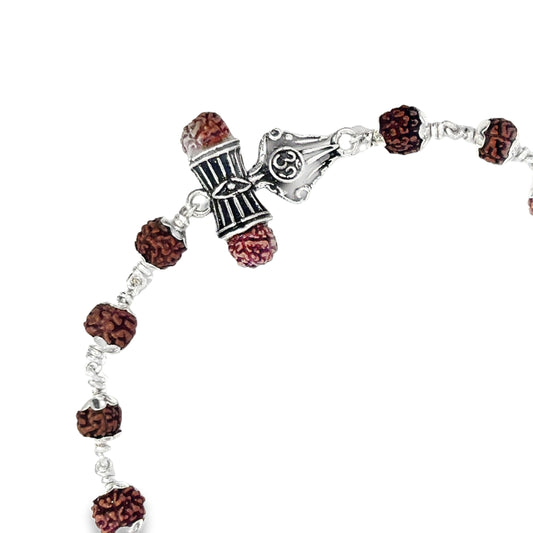 Rudraksha and Silver Beaded Bracelet with Shiva Trishul Pendant
