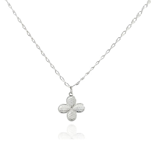 925 Silver Clover Pendant Necklace – Textured Floral Charm Minimalist Jewelry